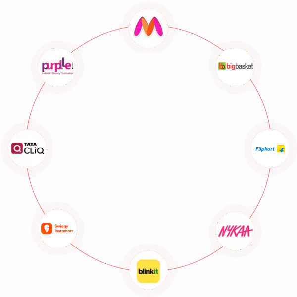 We support Myntra, AJIO, Nykaa, Amazon, Flipkart, Quick Commerce platforms, and global marketplaces like NOON, Walmart, eBay & Etsy.